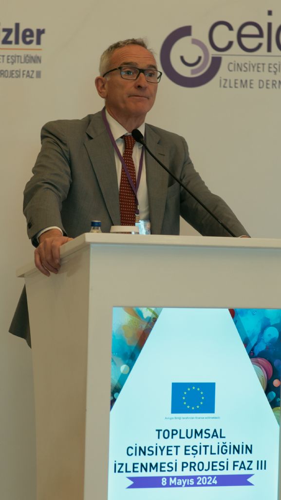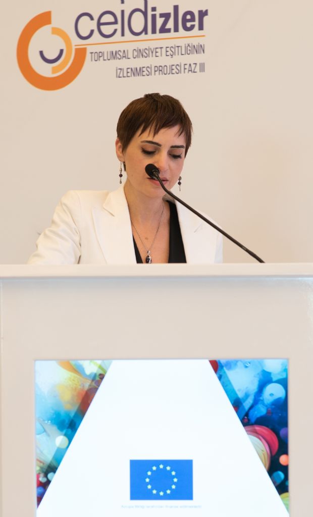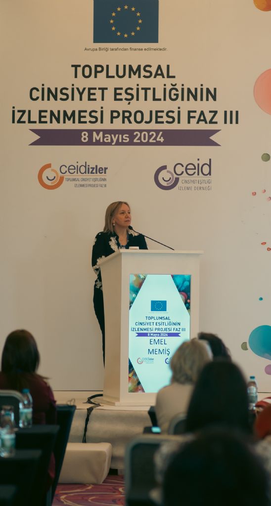 In our Project Launch Event, where we came together with stakeholders from 11 project provinces, we both introduced the "Strengthening Participatory Democracy in Turkey: Gender Equality Monitoring Project" and discussed where we are in terms of gender equality. Emel Memis, on behalf of the Gender Equality Monitoring Association, and First Undersecretary Odoardo Como, Head of the Cooperation Department, on behalf of the Delegation of the European Union to Turkey, made opening speeches. Following a short project introduction video on what we have been doing in Phase II of our project, CEIDizler Project Director Ülker Sener gave a comprehensive presentation on the third phase of our project. Sener emphasized that our CEIDizler project aims "to increase the capacities of civil society organizations to strengthen human rights, participatory democracy, and gender equality" and explained the reasons for developing a project on monitoring gender equality.